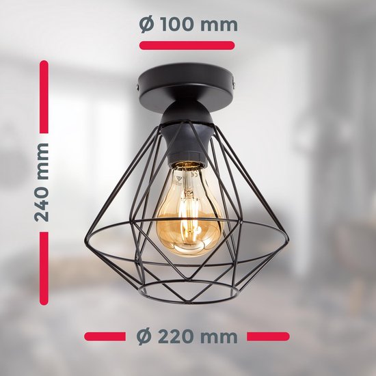 Specificaties: B.K.Licht – Industriële Plafondlamp – zwart – metaal – Ø22cm – excl. E27 lichtbron