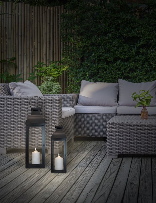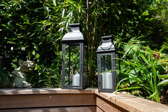 FlinQ Windlichten met Kaars 2-pack – Binnen & Buiten – IP44 Spatwaterdicht – Kaars op batterijen