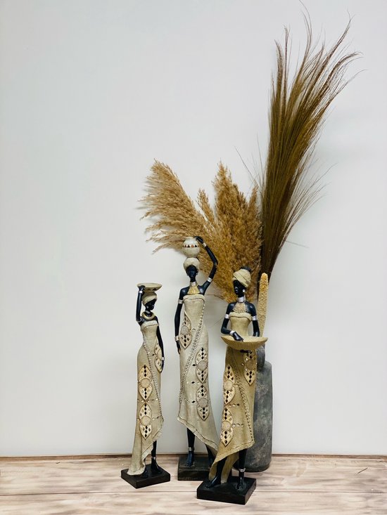 Specificaties: Home&Deco Afrikaanse dame Crème draagt pot op hoofd-65x9x9 cm-1 stuks-XL
