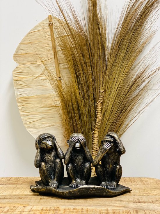Home&Deco Horen zien zwijgen apen beeld zittend in blad-14x16x27 cm-1 stuks