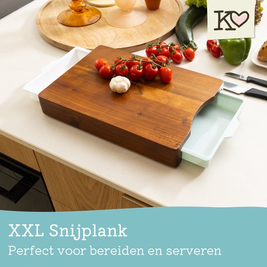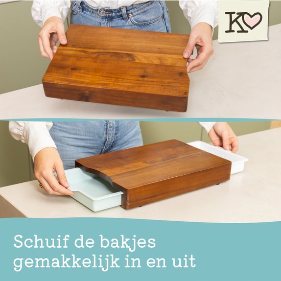 Kristie’s Kitchen Snijplank met 2 Opvangbakken – Borrelplank – Serveerplank – Houten Tapasplank – Antislip – Acacia
