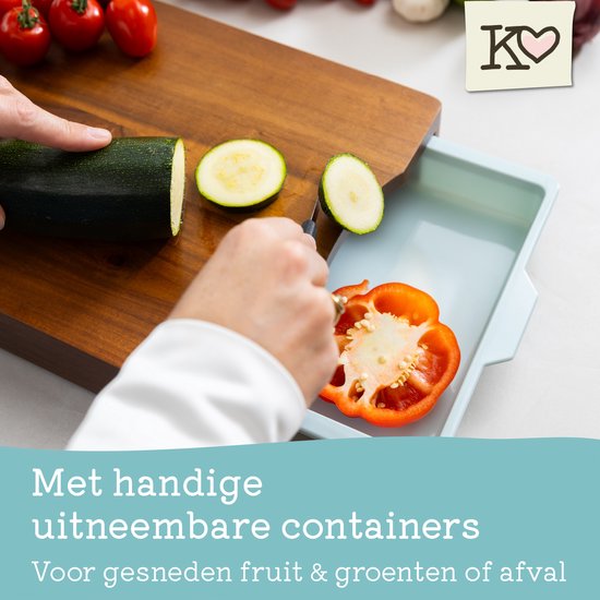Specificaties: Kristie’s Kitchen Snijplank met 2 Opvangbakken – Borrelplank – Serveerplank – Houten Tapasplank – Antislip – Acacia