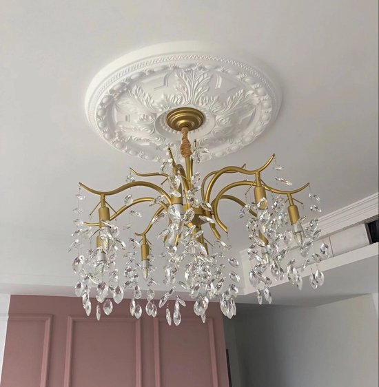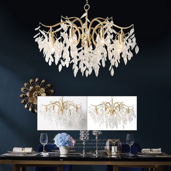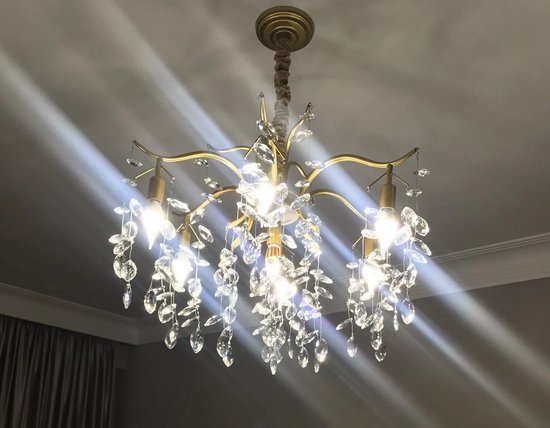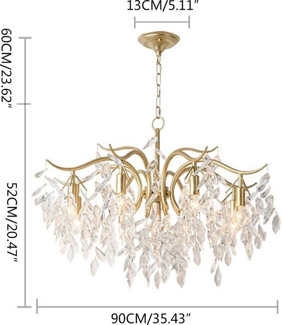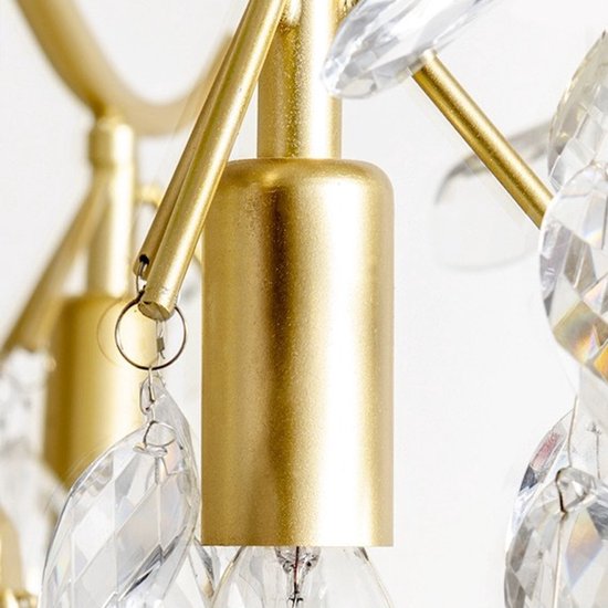 Specificaties: LuxiLamps – 9 Arm Kristallen Kroonluchter – Crystal Chandelier – Goud – Hanglamp – Woonkamerlamp – Moderne lamp – Plafonniere