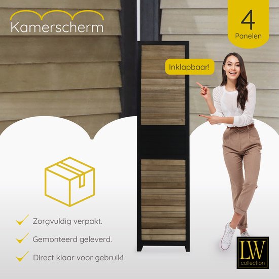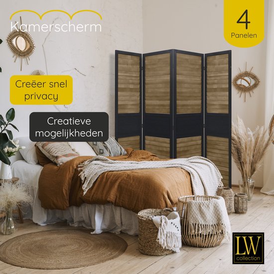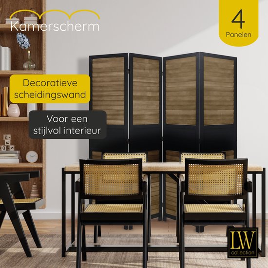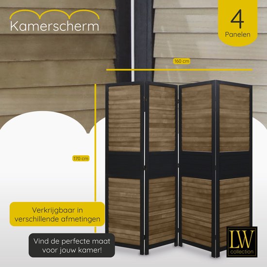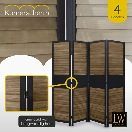 Specificaties: LW Collection Kamerscherm Zwart bruin Hout – kamerschermen 4 panelen – scheidingswand 170×160 kant en klaar