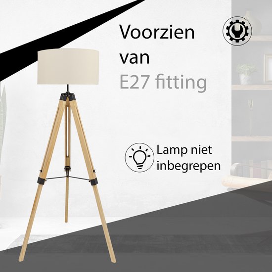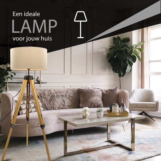 Specificaties: MaxxHome Vloerlamp Elly – Staande lamp – Leeslamp – Driepoot – Hout -145 cm – E27 – LED – 40W – Cream