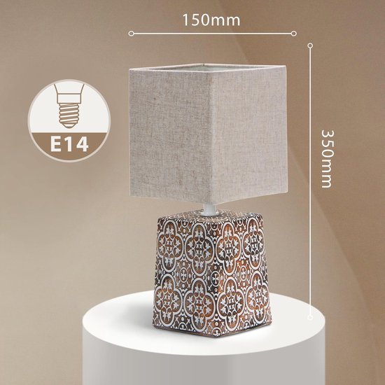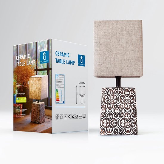Specificaties: Aigostar Tafellamp Bruin – Keramiek – Lamp met kap – H35 cm