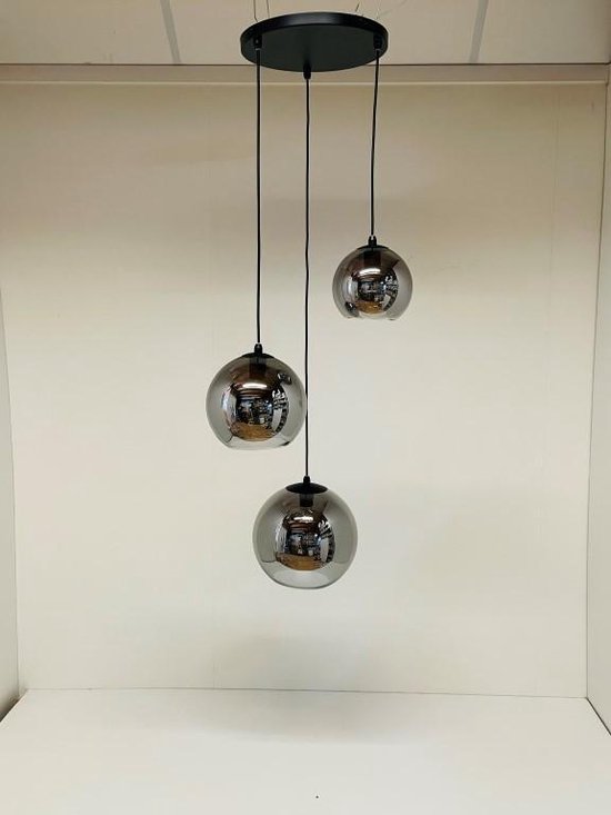 Specificaties: Hanglamp Smoking Glass – 3-lichts – Smoke Glas – 3 bollen – Rookglas