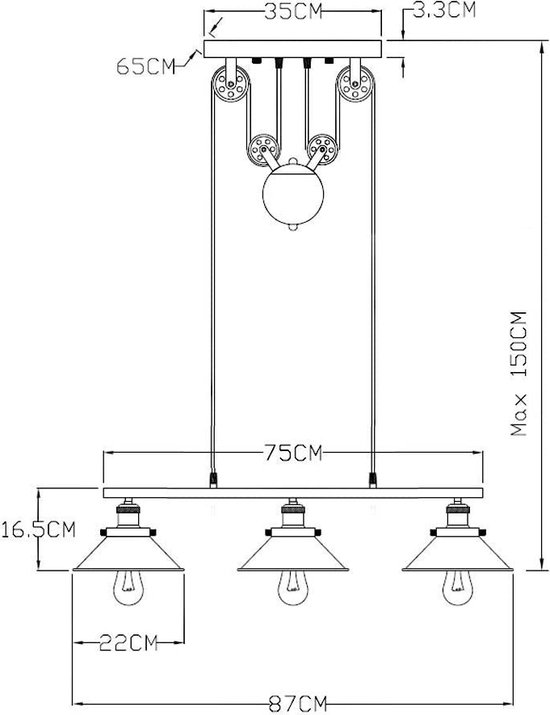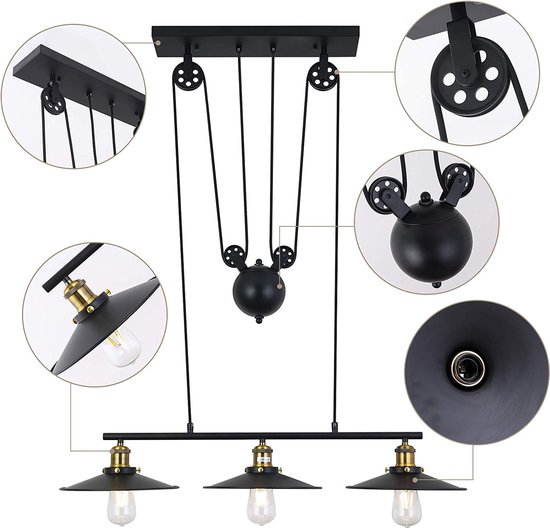 Specificaties: Hoexs – Hanglamp Industrieel Vintage – 3-delig Verstelbare Plafondlamp – max 150cm E27 Zwart – Geschikt voor Eettafel – Keukeneiland Loft-