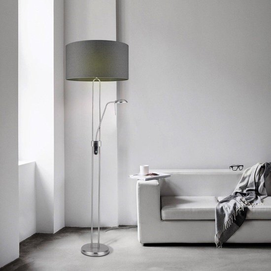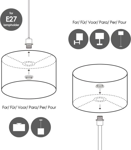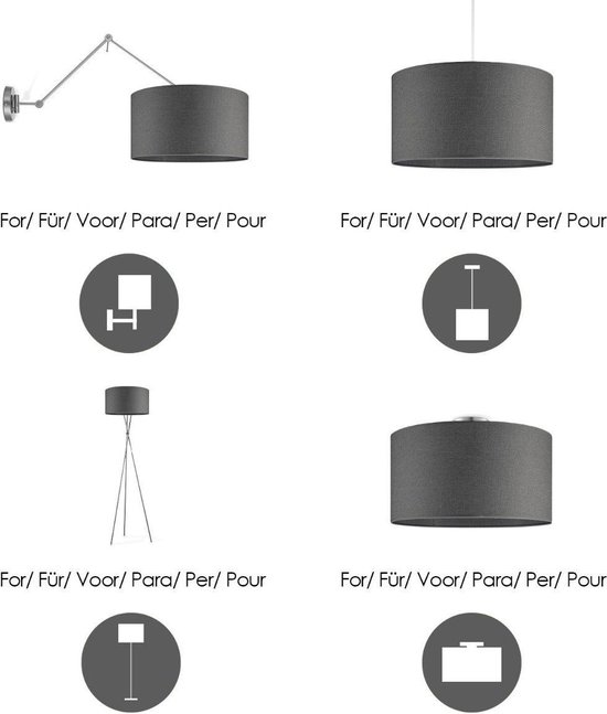 Specificaties: Home Sweet Home Lampenkap Canvas cilinder – van stof – storm grijs – Moderne stoffen Lampenkap – 45/45/23cm – E27 lamphouder – voor hanglamp, en vloerlamp – RoHS getest