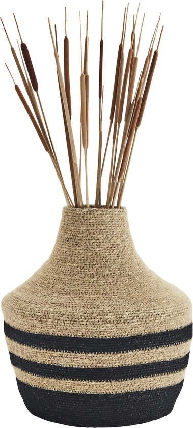 Madam Stoltz vaas zeegras gestreept naturel/ zwart Ø30x32cm