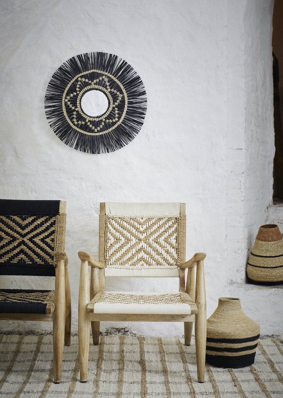 Specificaties: Madam Stoltz vaas zeegras gestreept naturel/ zwart Ø30x32cm