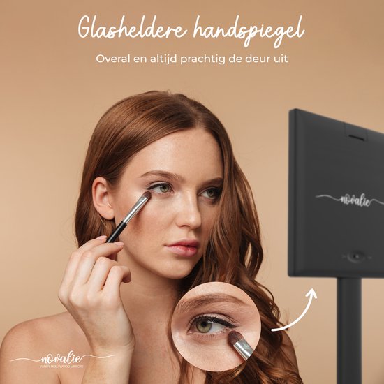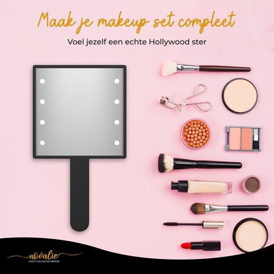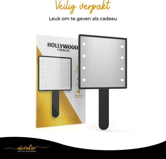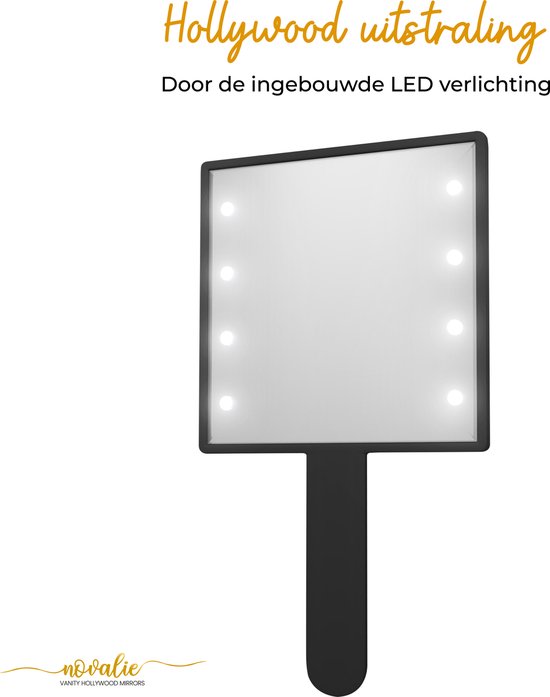 Novalie Hollywood Handspiegel met LED-Verlichting – Zwart – Professionele Make up Spiegel- Visagie, Kapper & Beauty spiegel
