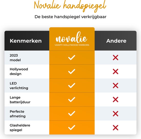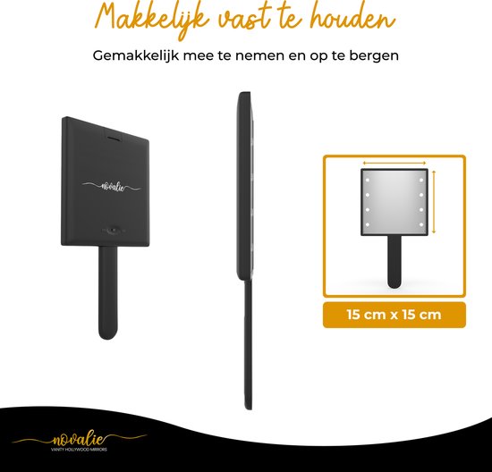 Specificaties: Novalie Hollywood Handspiegel met LED-Verlichting – Zwart – Professionele Make up Spiegel- Visagie, Kapper & Beauty spiegel
