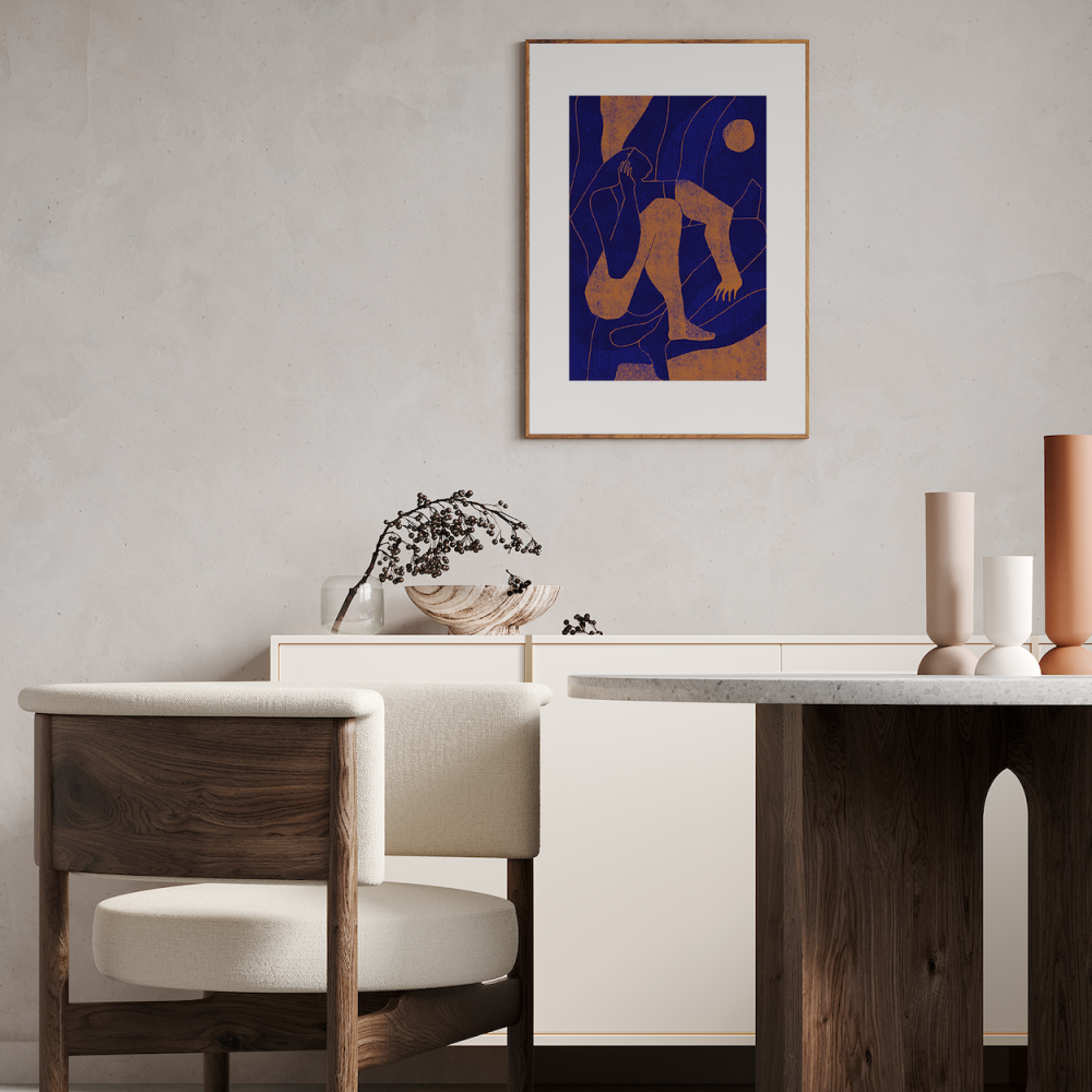 Specificaties: Poster Mujer y Calor 02 blauw papier 50x70cm