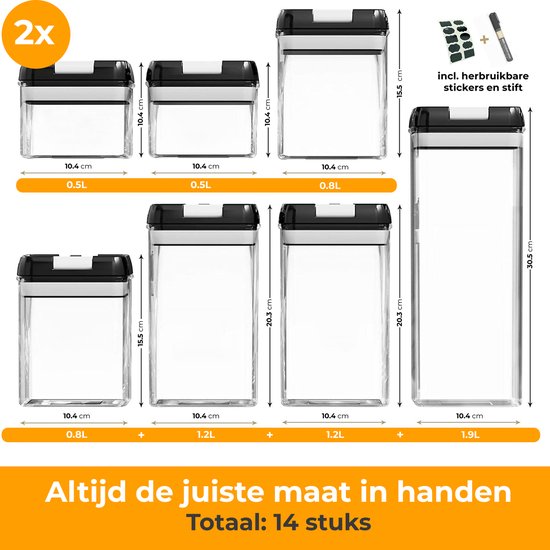 Stosh Voorraadpotten – Snoeppot – Voorraadbussen – Vershouddoos – 14 Stuks – BPA vrij – Kunststof