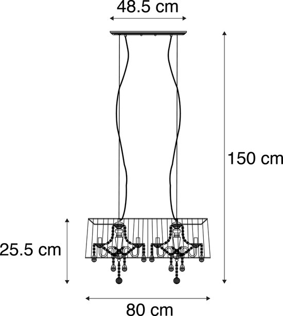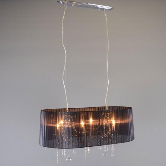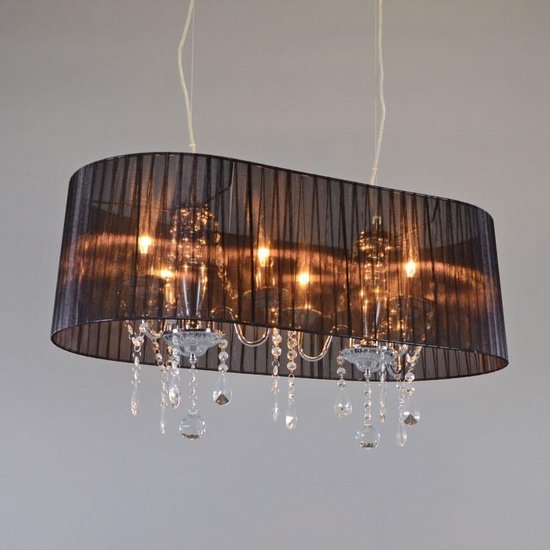 Specificaties: QAZQA ann-kathrin – Klassieke Kroonluchter met kap – 6 lichts – L 800 mm – Zwart – Woonkamer