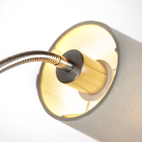 Specificaties: QAZQA retro – Klassieke Vloerlamp | Staande Lamp met flexarm met leeslamp – 1 lichts – H 1580 mm – Grijs – Woonkamer | Slaapkamer | Keuken