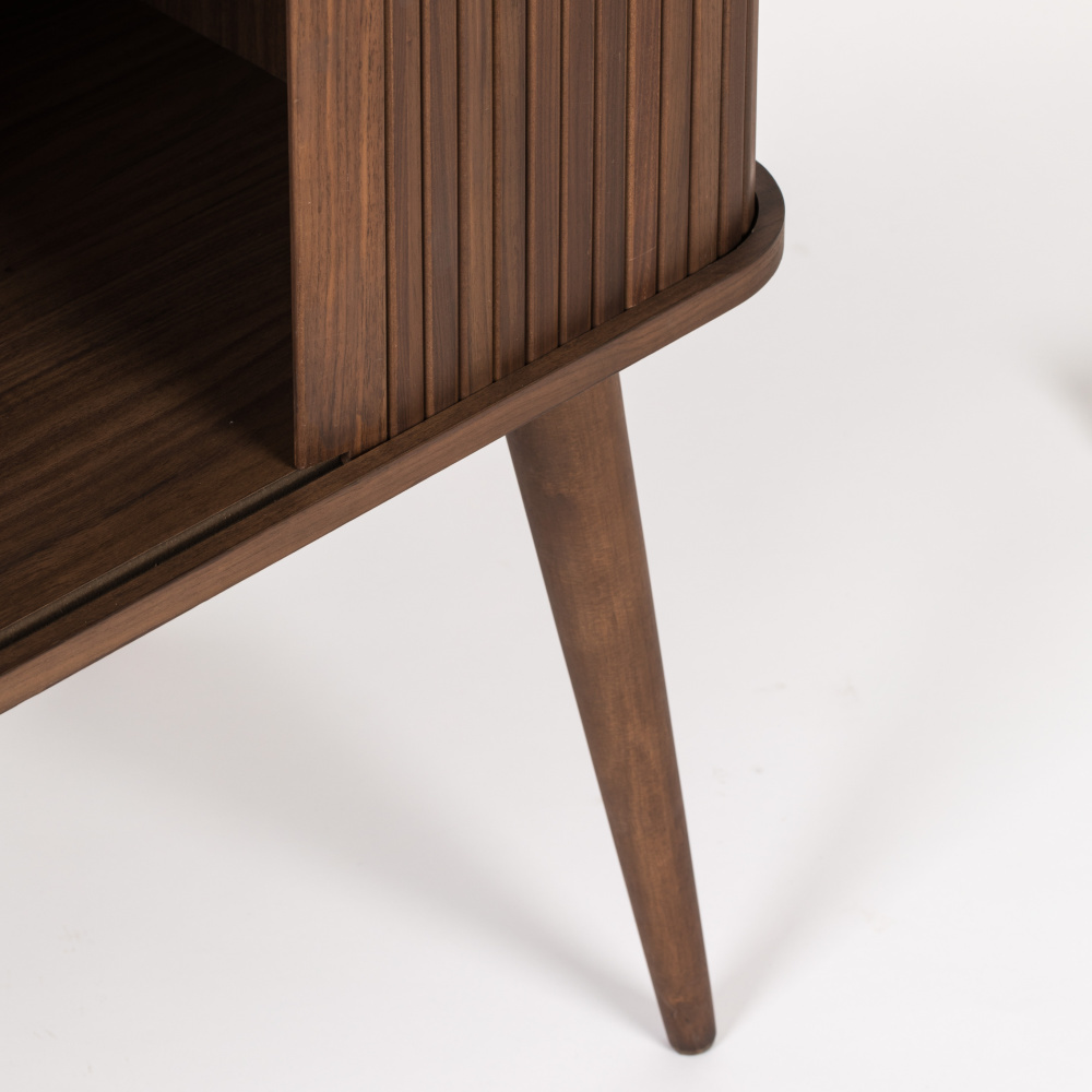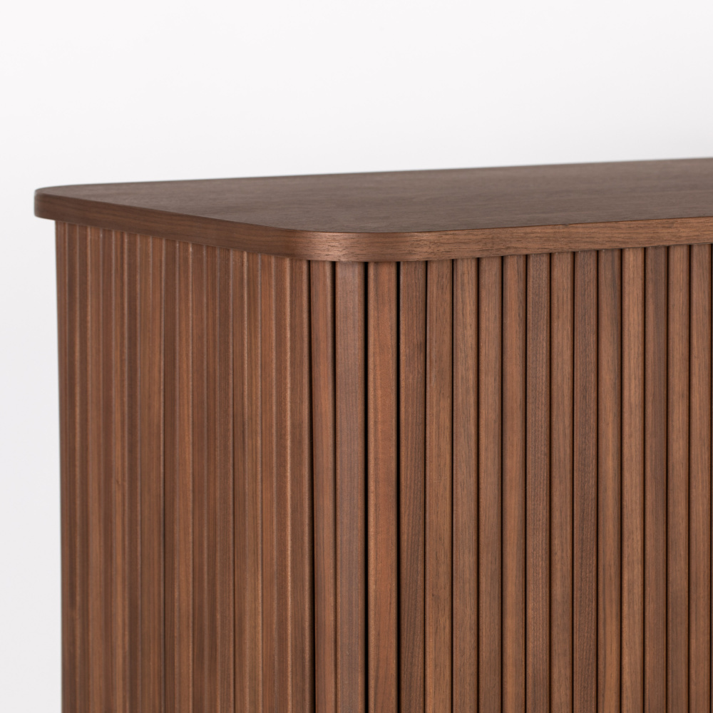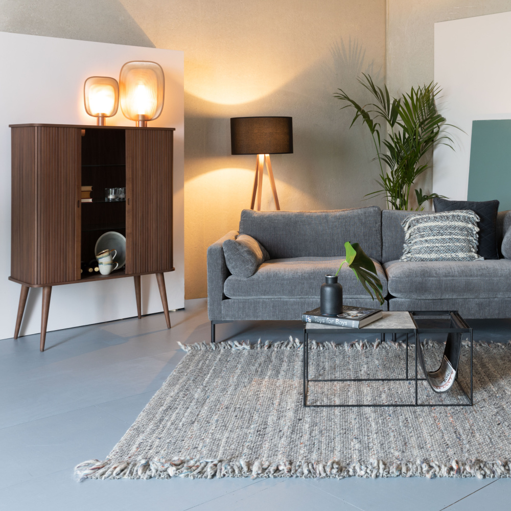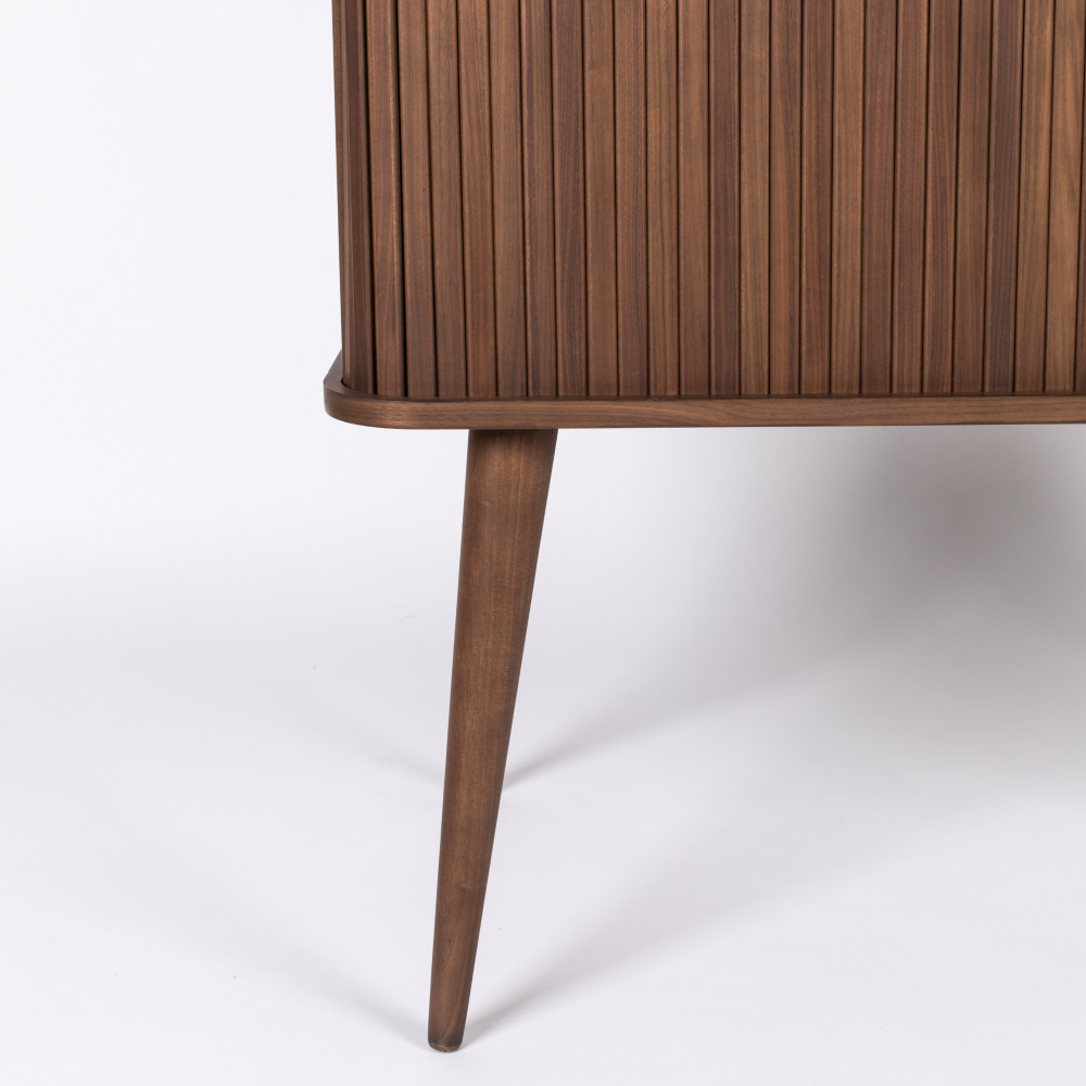De Barbier kast van Zuiver heeft een retro look, maar is in een modern jasje gestoken. De kast is gemaakt van massief notenhout en heeft drie glasplaten voor veel opbergruimte. Zet de schuifdeurtjes open en creëer een hippe buffetkast!