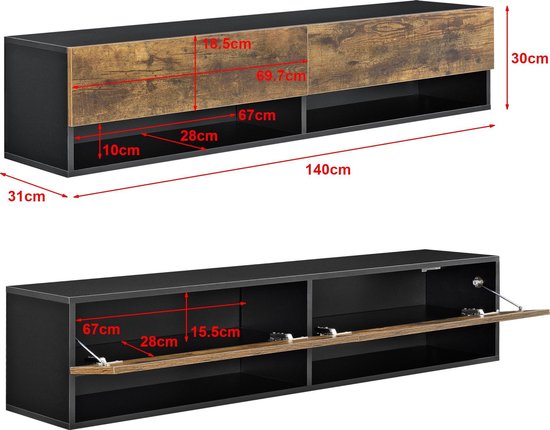 Specificaties: Zwevend kastje Halmstad 140x31x30 zwart en eiken donker